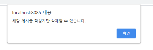 - 게시글 작성자가 아니면 alert창으로 삭제불가 표시