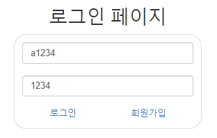 - 회원가입한 a1234를 이용 비밀번호는 테스트를 위해 text필드로 지정 암호형식으로 할 시 텍스트 타입을 password로 변경